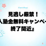 2025年6月22日 / 最終更新日 : 2025年12月3日 kobetsu5 ふぁいぶlog 見逃し厳禁!『入塾金無料キャンペーン、終了間近』 個別指導ふぁいぶlogをご覧頂きありがとうございます! 5月12日に開校して以来、ご好評頂いておりました 『入塾金無料キャンペーン』 もいよいよ今月末までとなっております。 先週、お問合せ頂いた保護者様より 『入塾金無料 […]